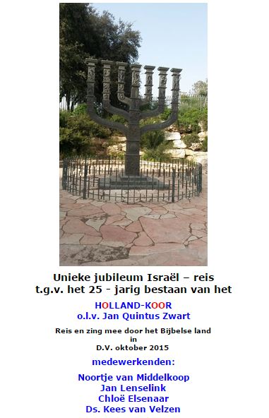 Van 9 – 18 oktober gaat het HOLLAND-KOOR weer op reis. Met ongeveer 250 personen gaan ze een aantal concerten geven in Israël. Medewerkende zijn: