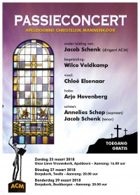 Het Apeldoorns Christelijk Mannenkoor geeft traditiegetrouw weer haar Passieconcerten in de lijdensweken, voorafgaand aan Pasen.