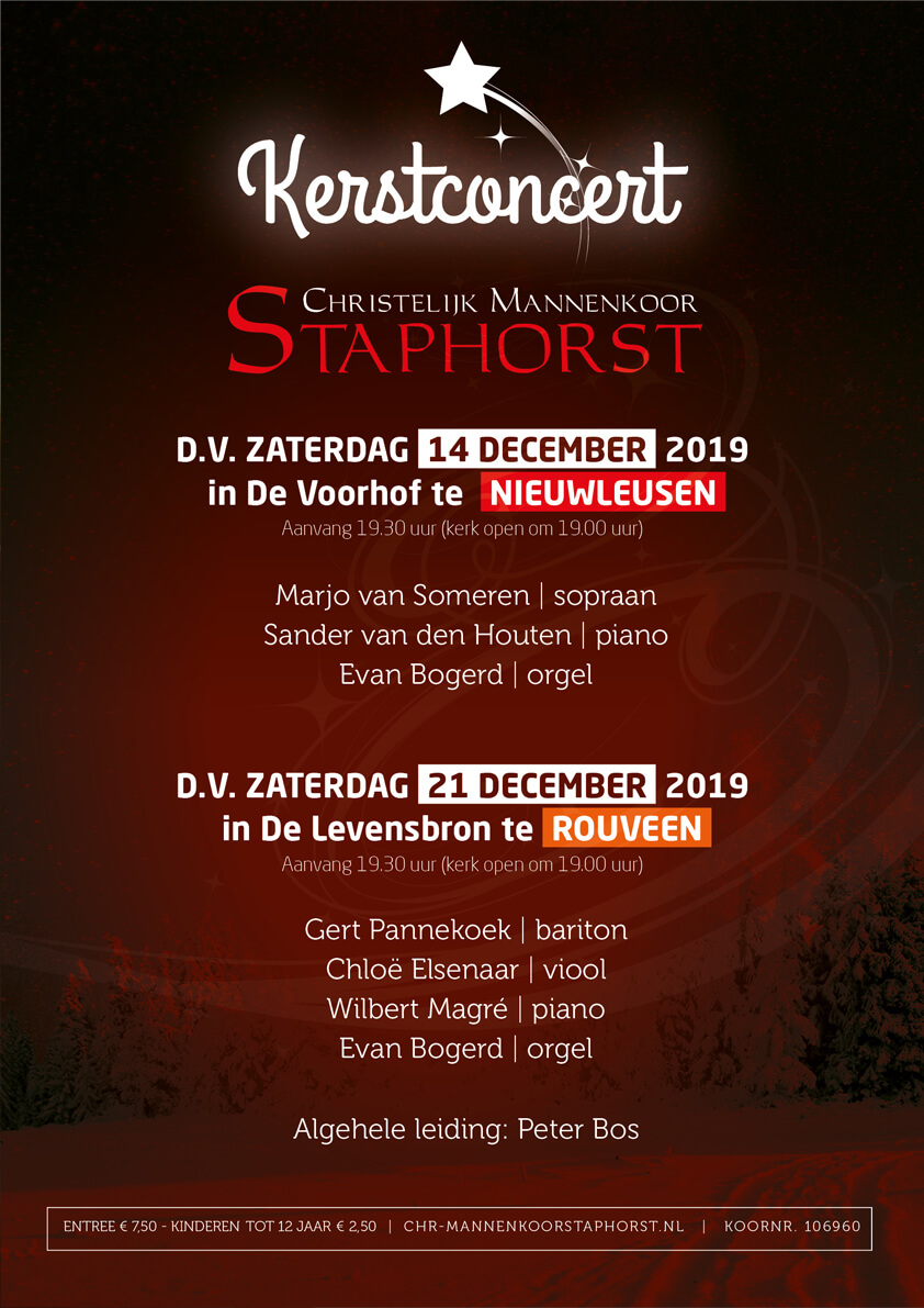 laurenskerk Grotekerkplein 27, RotterdamGroot Advents- Kerstconcert (UITVERKOCHT) ROTTERDAM; Grote- of St Laurenskerk m.m.v. • Chr. Sliedrecht Mannenkoor Ichthus o.l.v. Martin Zonnenberg • Chr. Waddinxveens Mannenkoor De Gouwestem en The Martin Mans Formation o.l.v. Martin Mans • Sterre van Boxtel - soliste • Chloë … Vervolgd